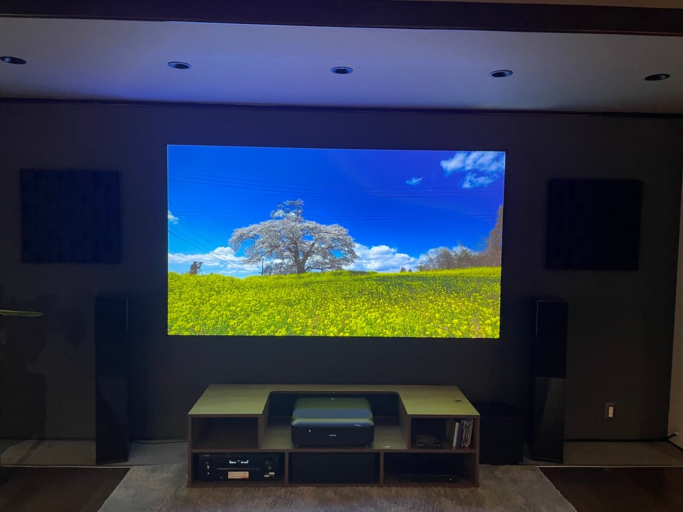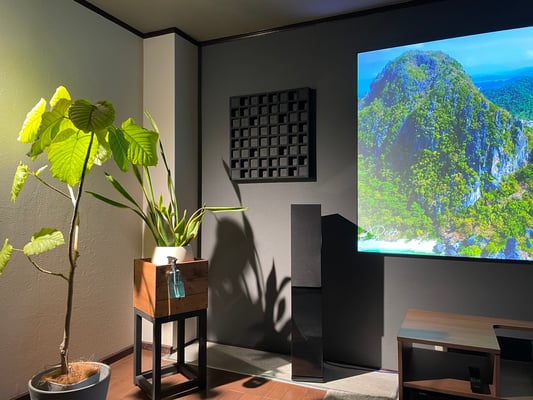 店内には最新4K超短焦点プロジェクターや、最新AVアンプによるDolby Atmos対応(5.1.2ch)のサラウンド環境を備えた